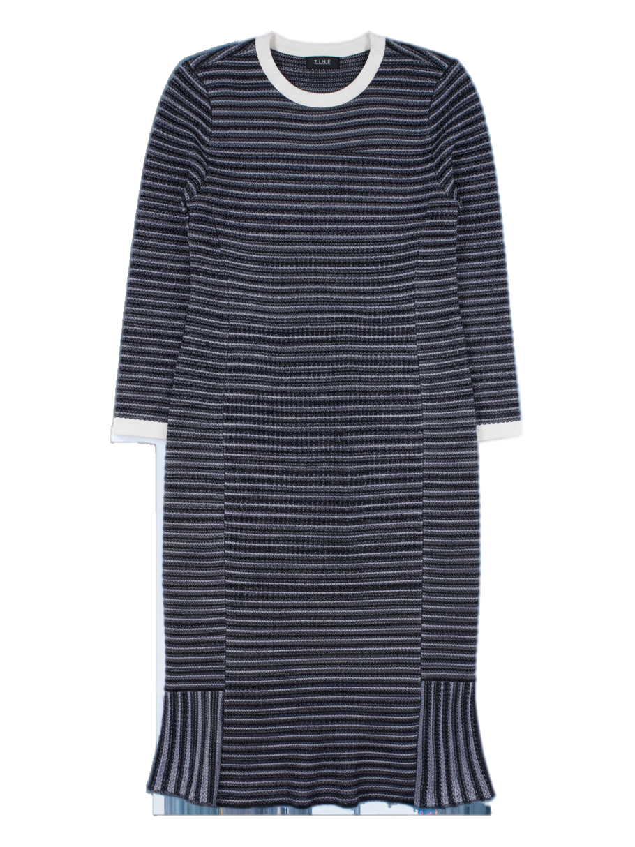 스트라이프 트위드 롱 원피스