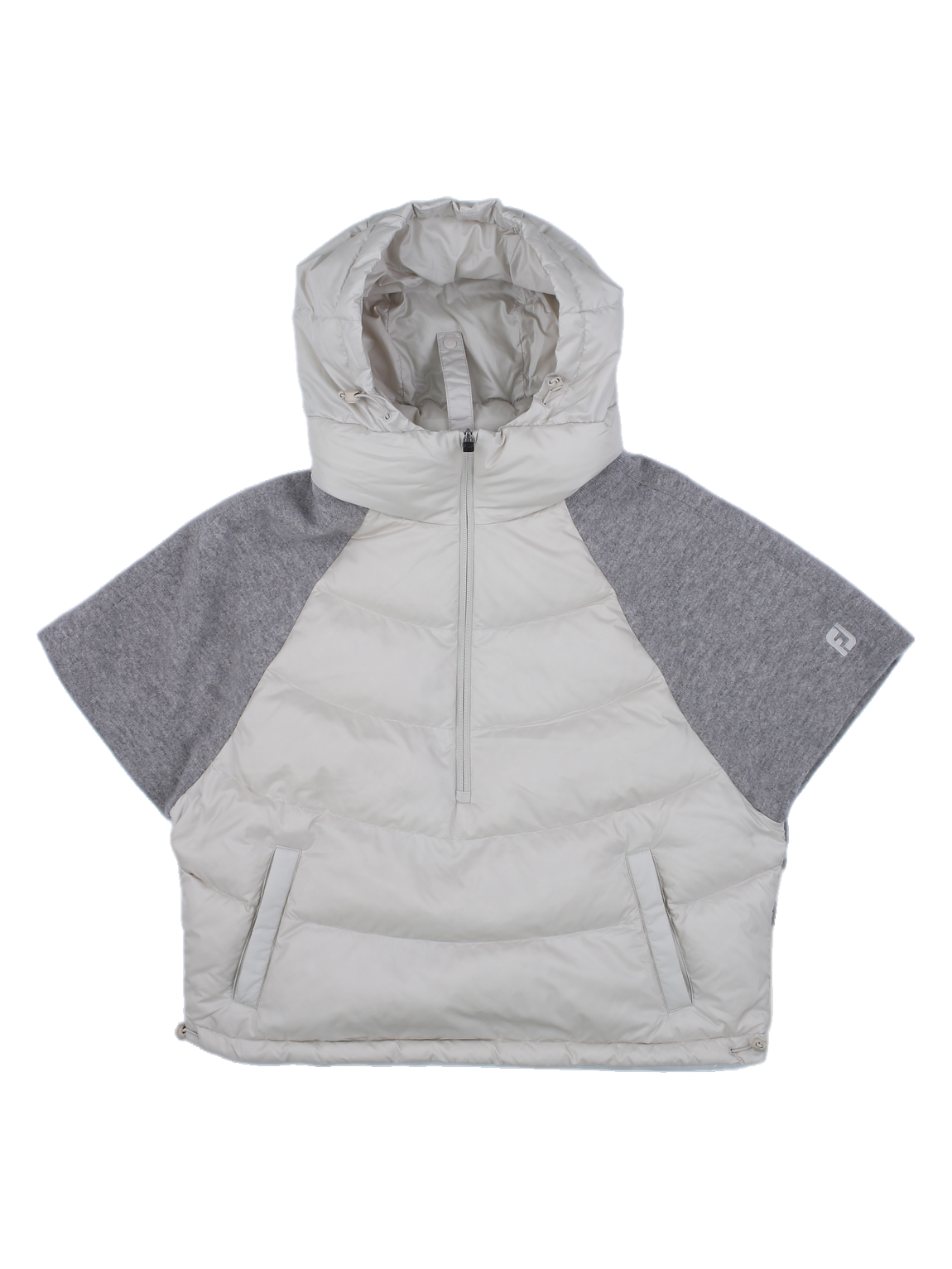 여성 그레이 콤비 후드 하프 지퍼 퀄팅 베스트