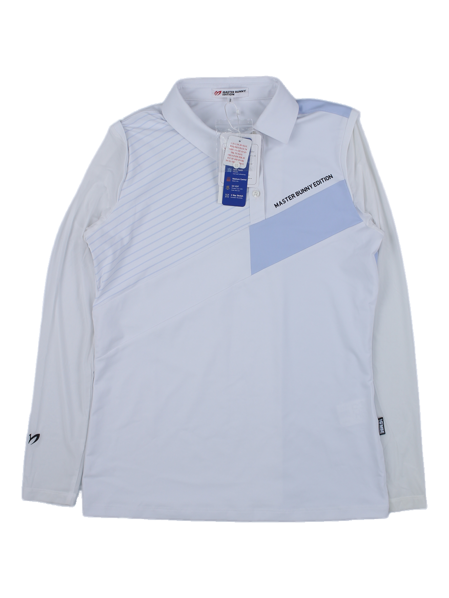 마스터바니에디션 화이트/블루 배색 긴팔 카라티